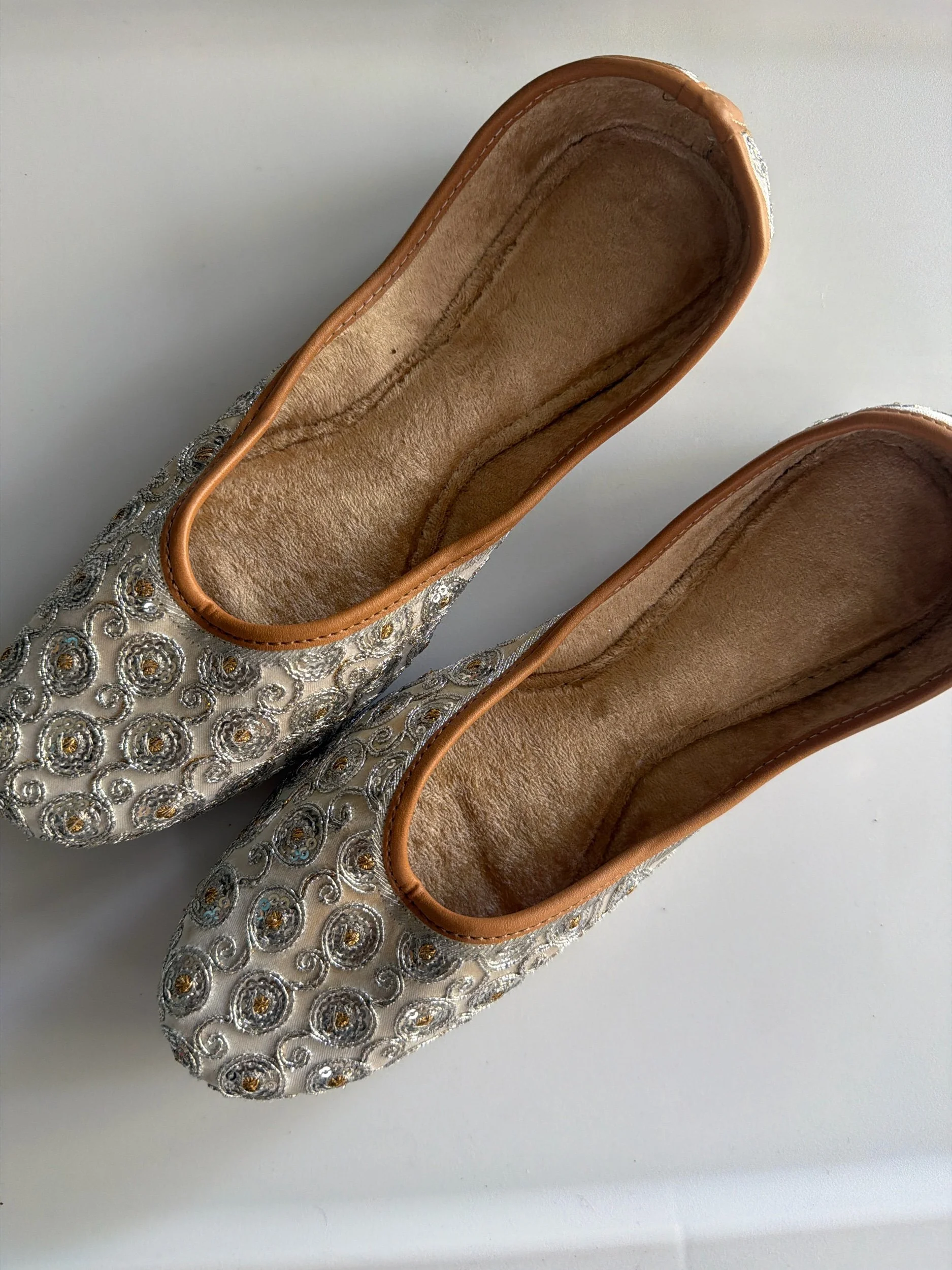 We recommend sizing up if you are in between sizes. Because our products are handmade, sizing in khussas can vary slightly from pair to pair. It's important to consider that the shoes will likely stretch and adjust to your foot shape over time. Our khussas feature padded insoles and rubber bottom for added comfort. Please see our FAQ for more information.